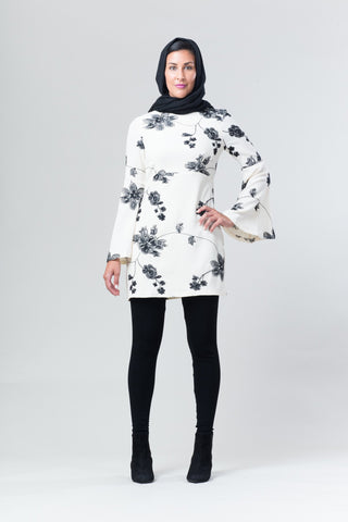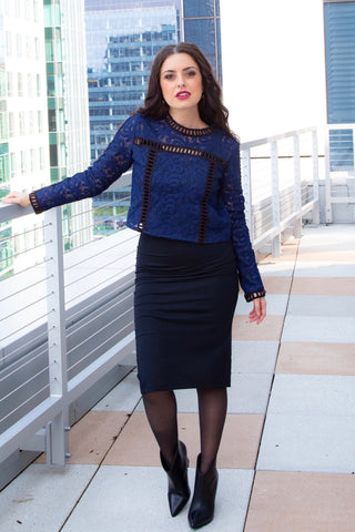 The Kit Blouse is a sheer lilac button down top with mulberry satin and collar cuffs. To finish the look, a black satin bow tie around the neck is incorporated. Pairs very well with leggings or under a dress.