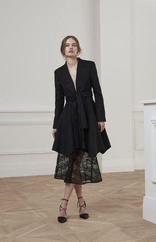 This beautifully tailored, wrap wool coat is fully lined. It is a heavyweight fabric with adjustable waist tie and full hem. The hem is asymmetrical and creates an elegant yet trendy look for the chilly weather.