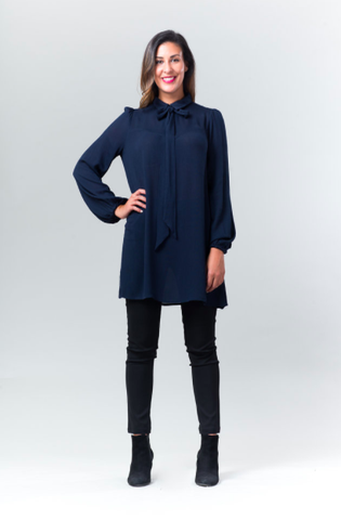 The Perfect Wide Leg Trouser is a wide leg high waisted pant. The pant has a zip closure in the back. It also has a bow detail at the waist line. This pant looks great and can be worn without heels for girls on the shorter side. The model is a 5’5. If you are taller than this account for the length of the pant.