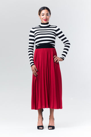 The Perfect Wide Leg Trouser is a wide leg high waisted pant. The pant has a zip closure in the back. It also has a bow detail at the waist line. This pant looks great and can be worn without heels for girls on the shorter side. The model is a 5’5. If you are taller than this account for the length of the pant.